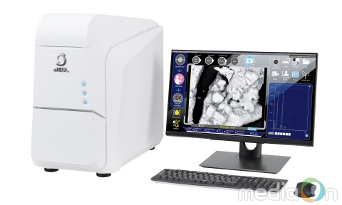 회사는 이처럼 높아지는 시장의 요구에 부응하여 매우 성공적이고 수상 경력이 있는 기존의 인터치스코프시리즈SEM을 바탕으로 새로운 탁상용 SEM인 JCM-7000을 개발했다. JCM-7000시리즈는 인터치스코프 시리즈의 기능에 비교될 만큼 혁신적인 기능이 통합돼 있다. JCM-7000시리즈의 특징은 1) 고도의 작동성을 위한 단순한 그래픽 사용자 인터페이스, 2) 작은 밑바닥 면적, 3)’제로맥’ 기능을 통한 광학 현미경 이미징에서 SEM이미징으로의 순조로운 전환, 4) ‘라이브 어낼리시스’ 기능을 통해 이미지를 관찰하면서 실시간 요소 분석, 5) 2축 모터라이즈 스테이지를 통한 순조로운 작동 등이다.